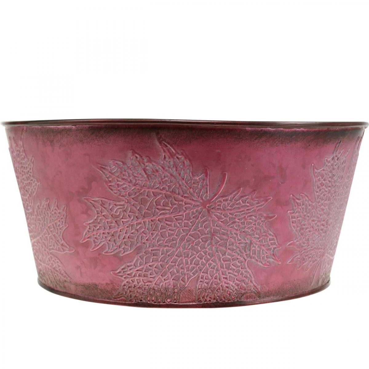 Product name: Plant bowl for autumn, metal container with leaf decoration, decorative pot wine red Ø25cm H11cm