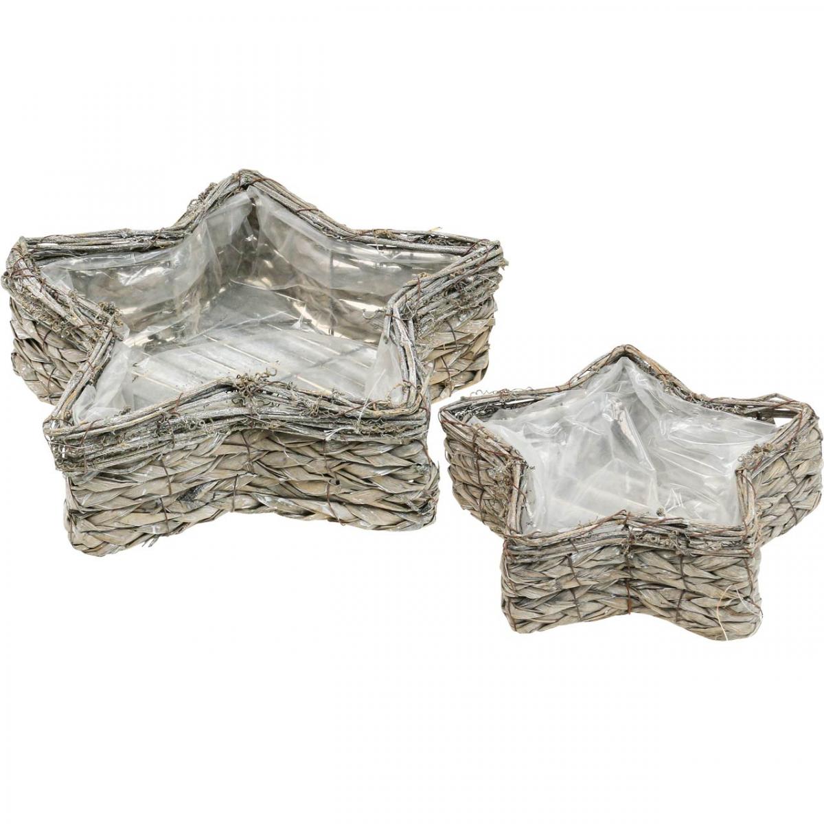 Plant bowl star, planter seagrass Ø32/23.5cm set of 2
