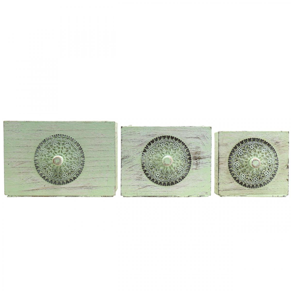 Plant box decorative drawer shabby green 15-23cm set of 3