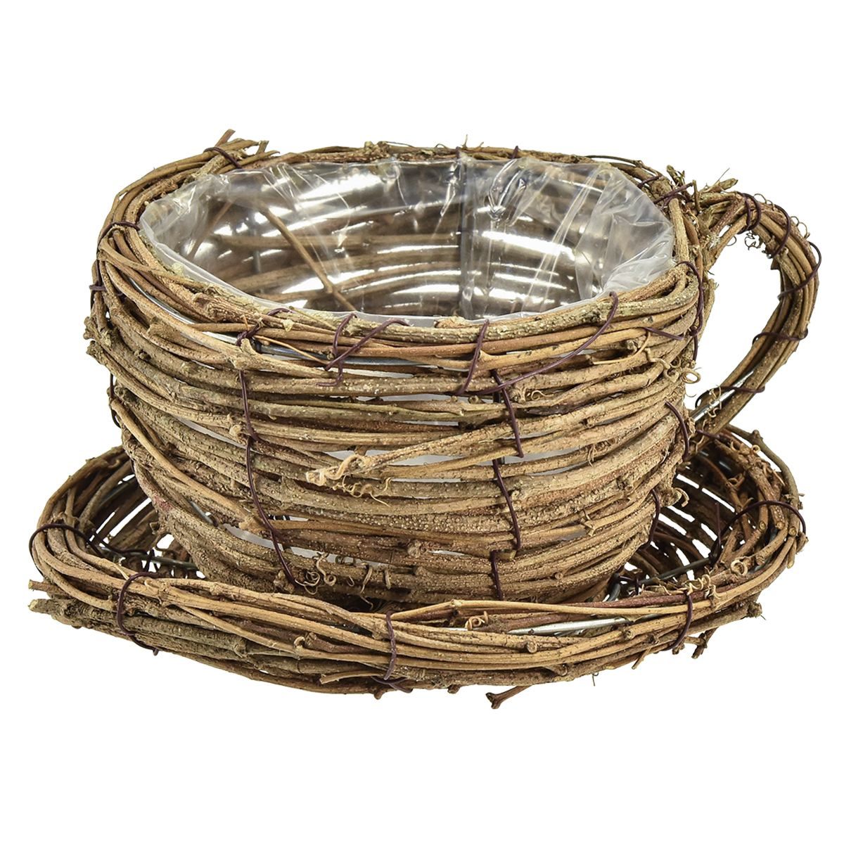 Plant cup with plate plant pot vine natural Ø19cm H9cm