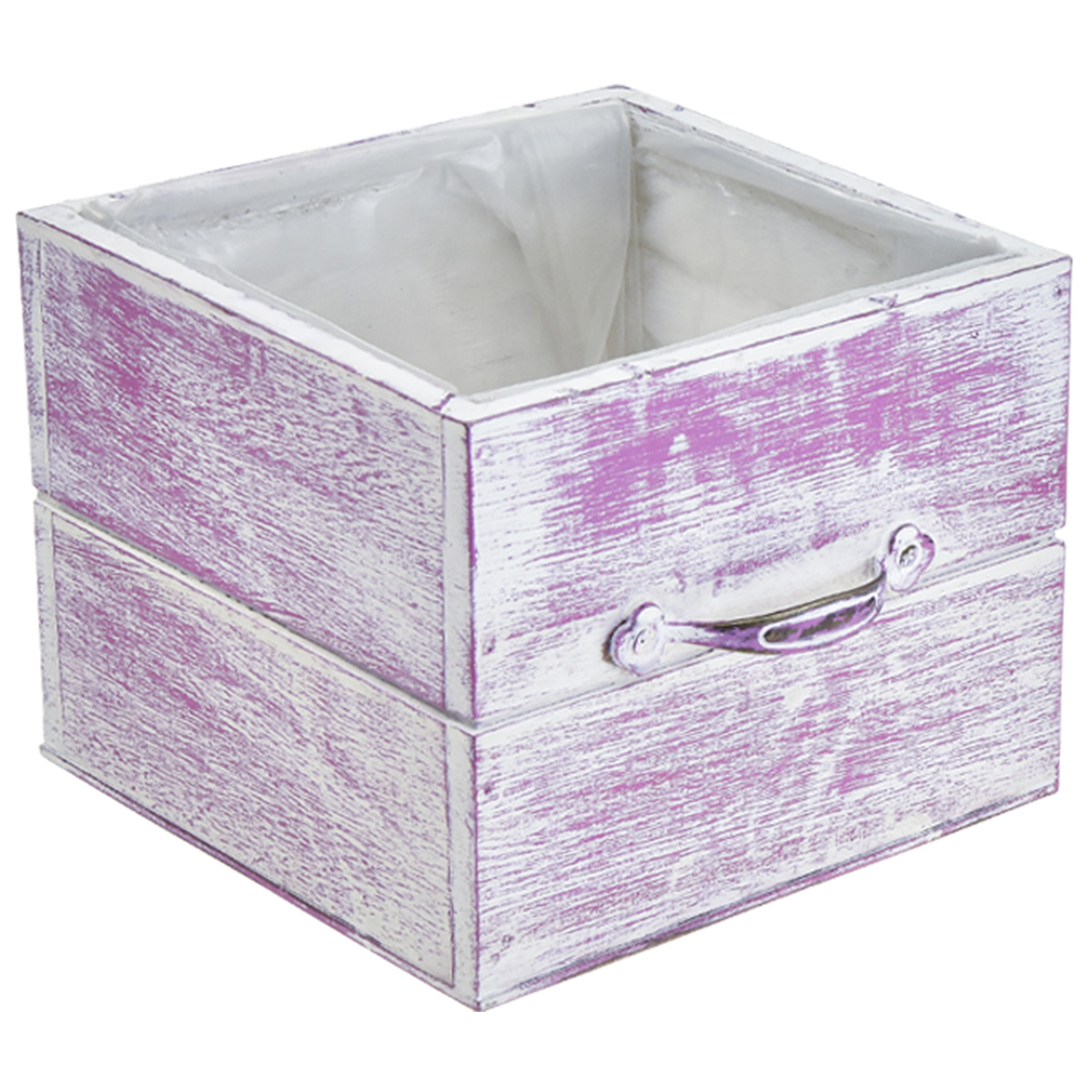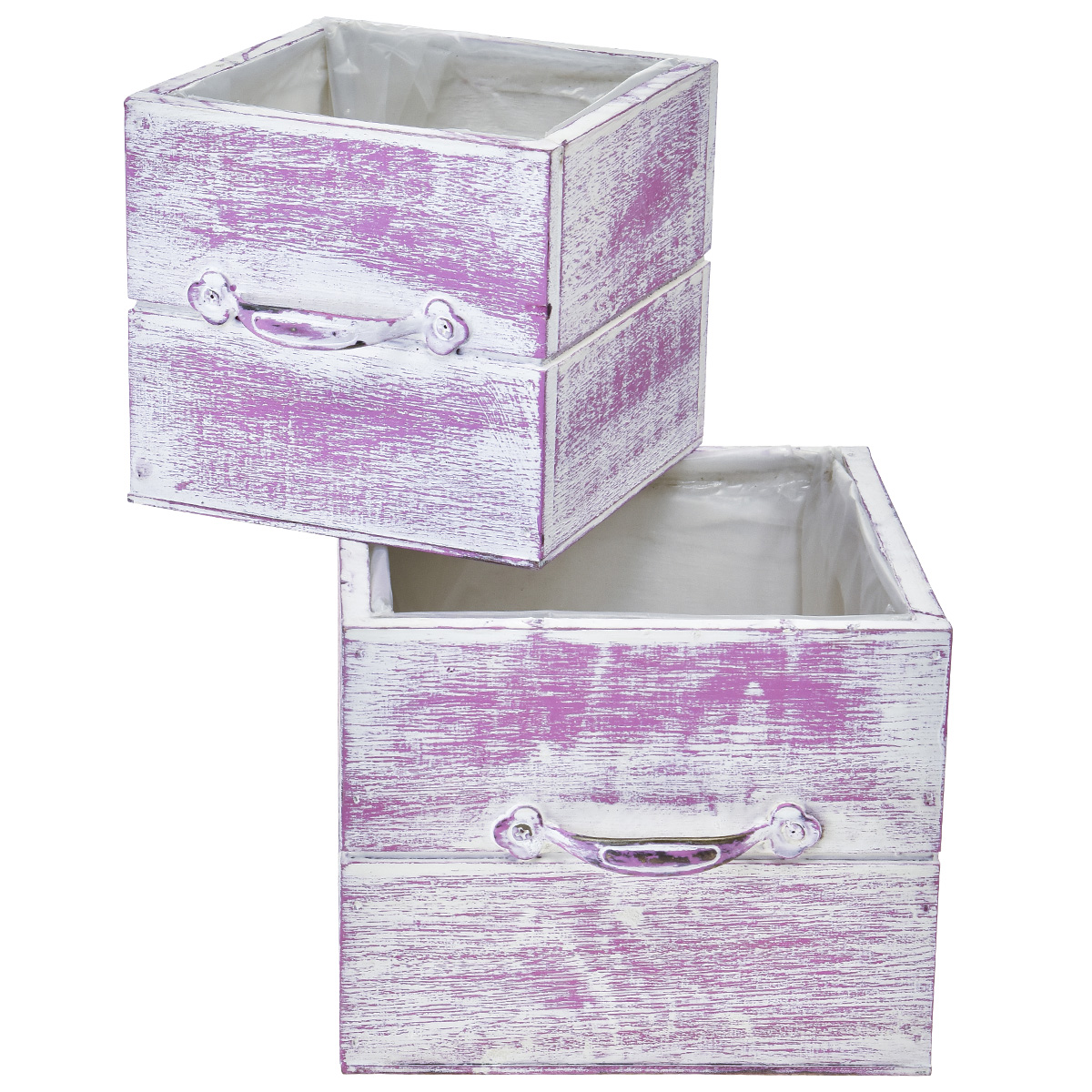 Plant drawer with handle pink white wood 12/15cm set of 2