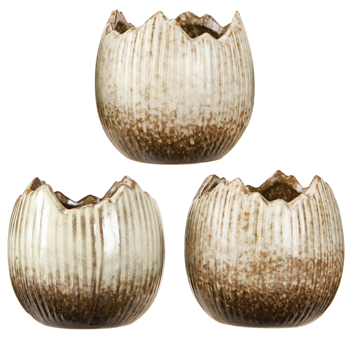 Plant Pot Ceramic Egg Broken Cream Brown Ø9.5cm 3 Pcs