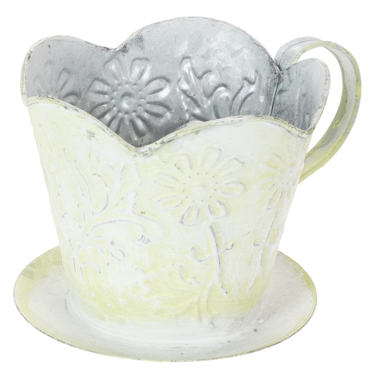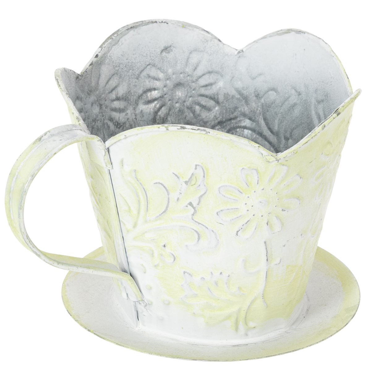 Plant pot, decorative coffee filter holder, metal cup for planting, green and white flower decoration, shabby chic, H11cm Ø11cm