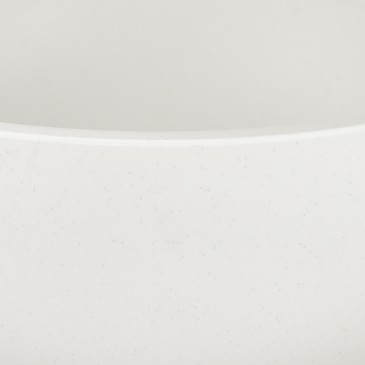 Round planter in white: stylish bowl for green plants and flowers on the balcony and terrace