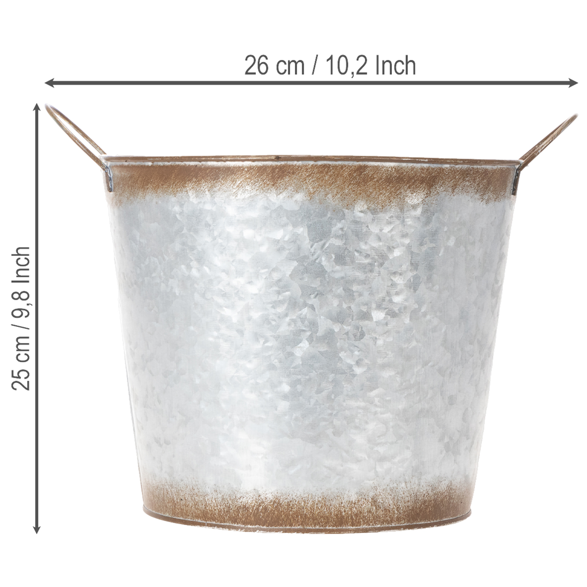 Plant pot with handles, decorative bowl with rust finish, silver metal container Ø26cm H25.5cm