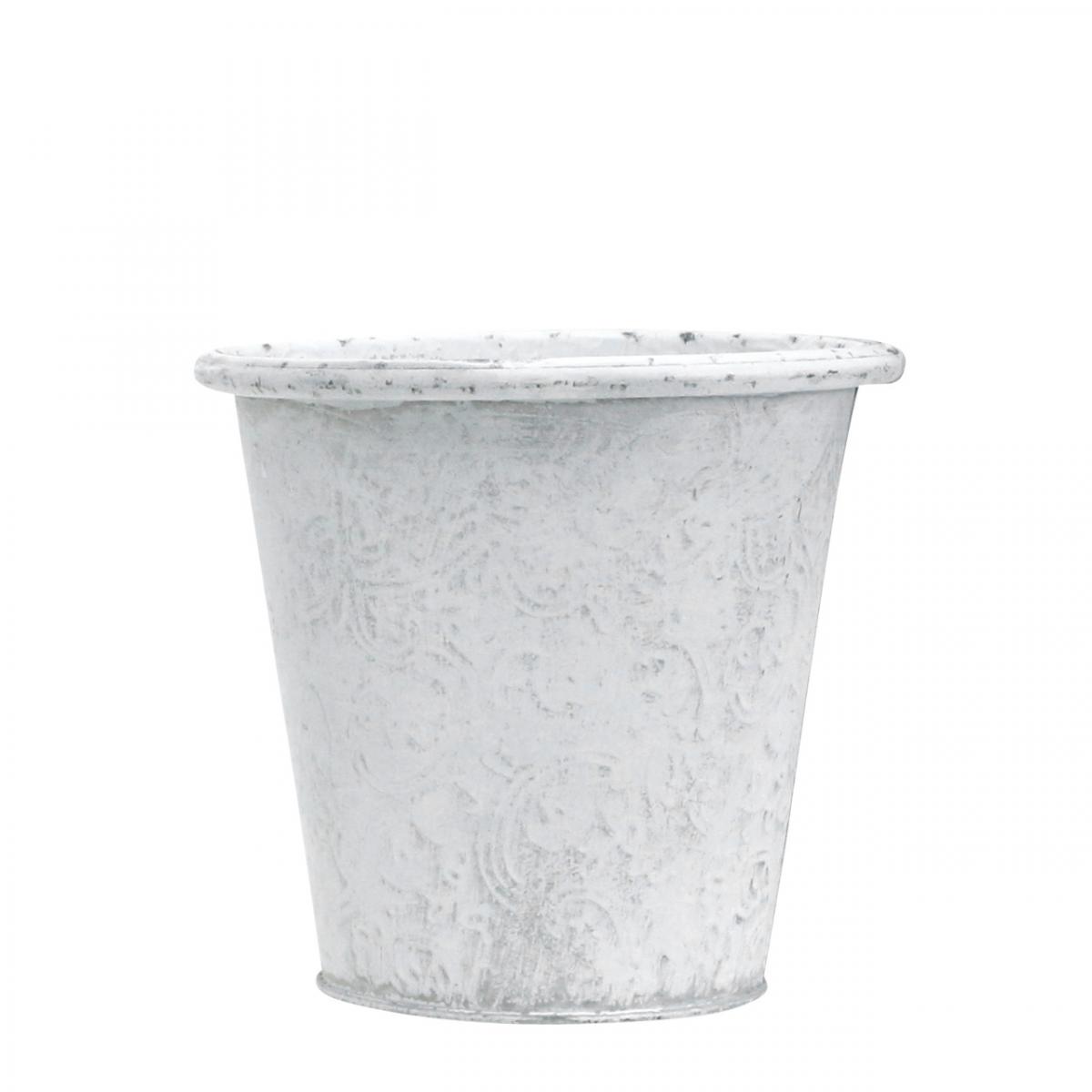 Plant pot with ornaments, planter, metal vessel white Ø15...