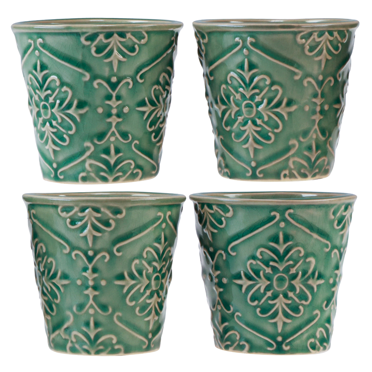 Planter Ceramic Craquelé Glaze Green Ø7cm H8cm 4 pcs