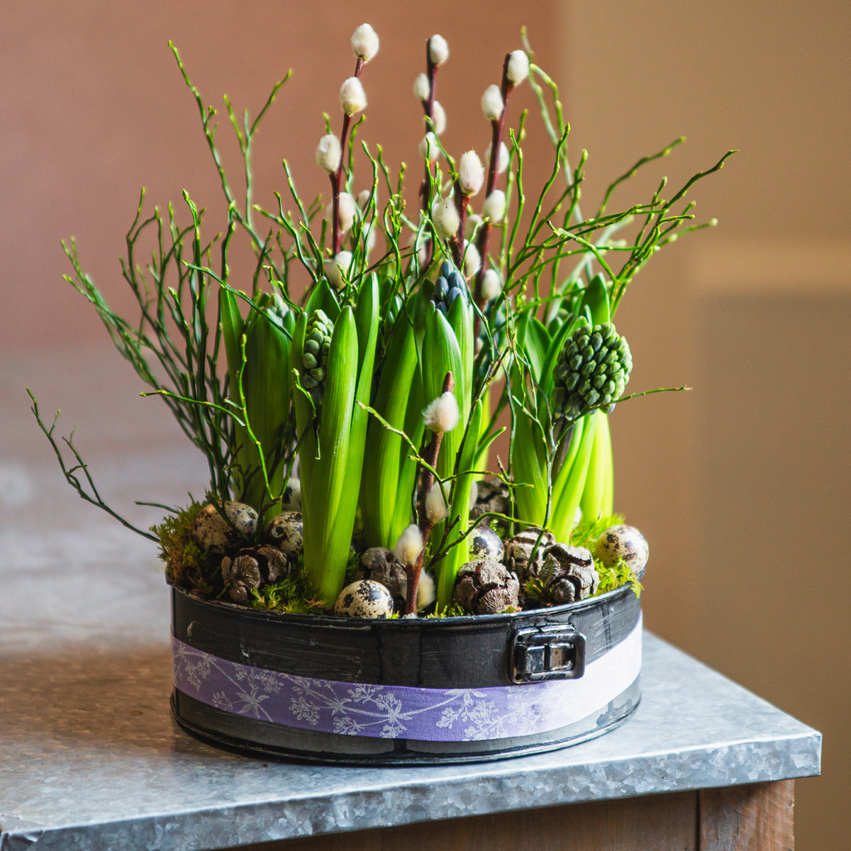 This decorative baking pan is a metal decoration and a planter in one! The plant bowl in the form of a springform pan is just as suitable as a saucer for arrangements as it is as a planter for one large or several smaller flower pots. The springform pan can also be used for planting directly. If the flower decoration is to be watered, you should cover the metal container with plant film in advance.