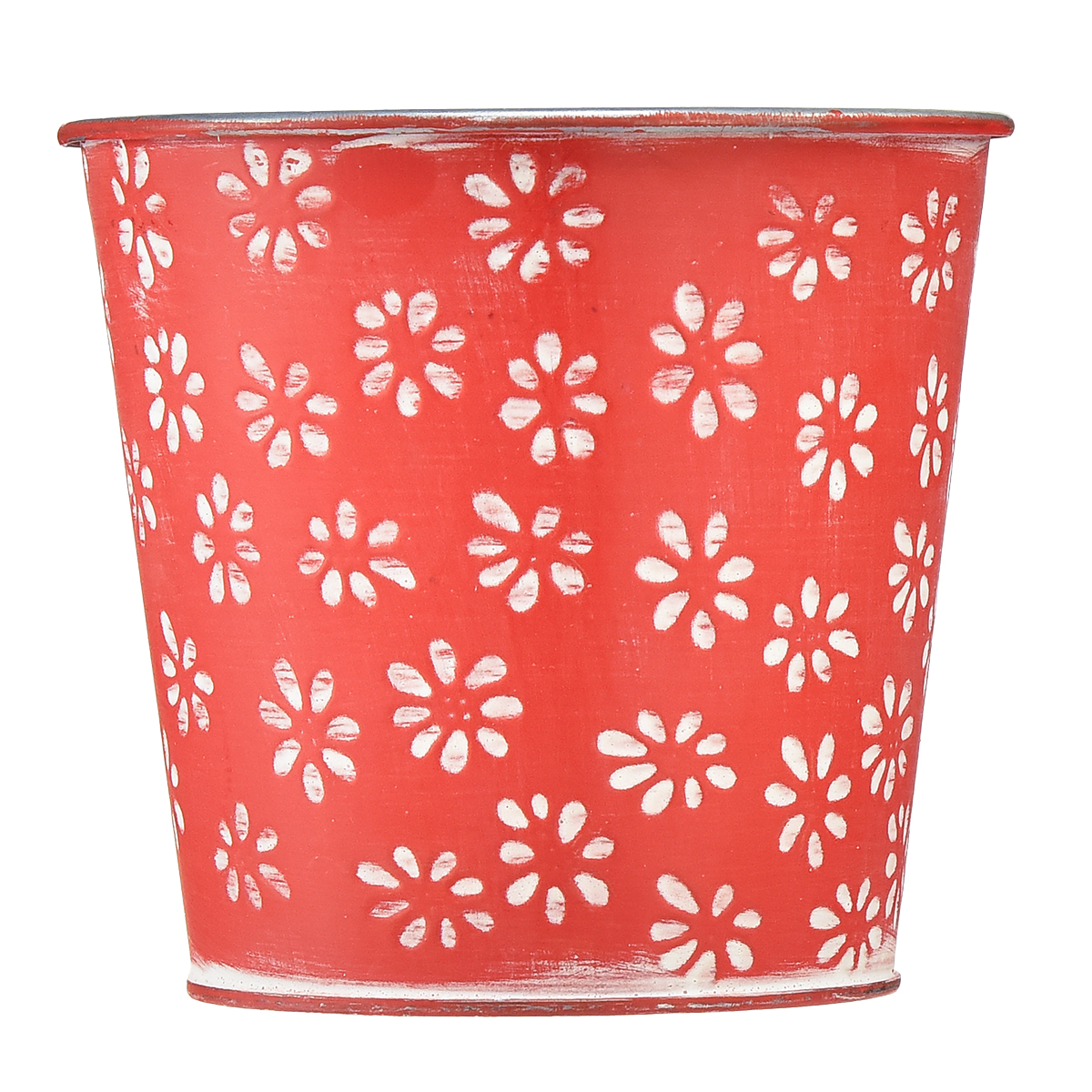 Planter red white flower pot floral metal Ø12.5cm H11.5cm