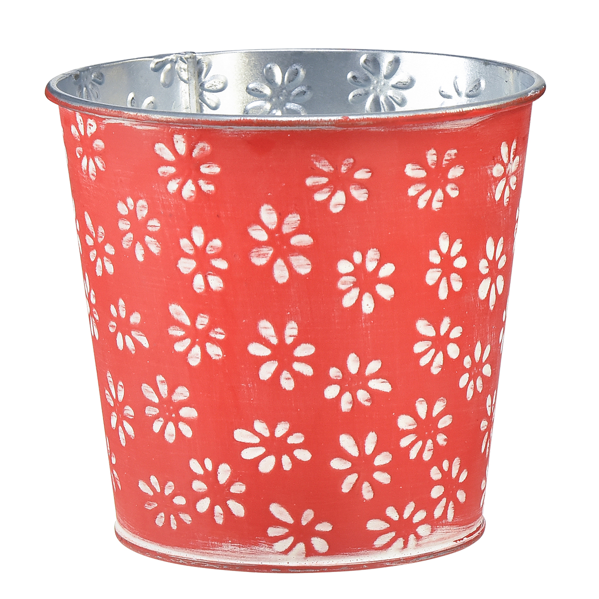 Planter red white mini flower pot floral metal Ø10.5cm H10.5cm