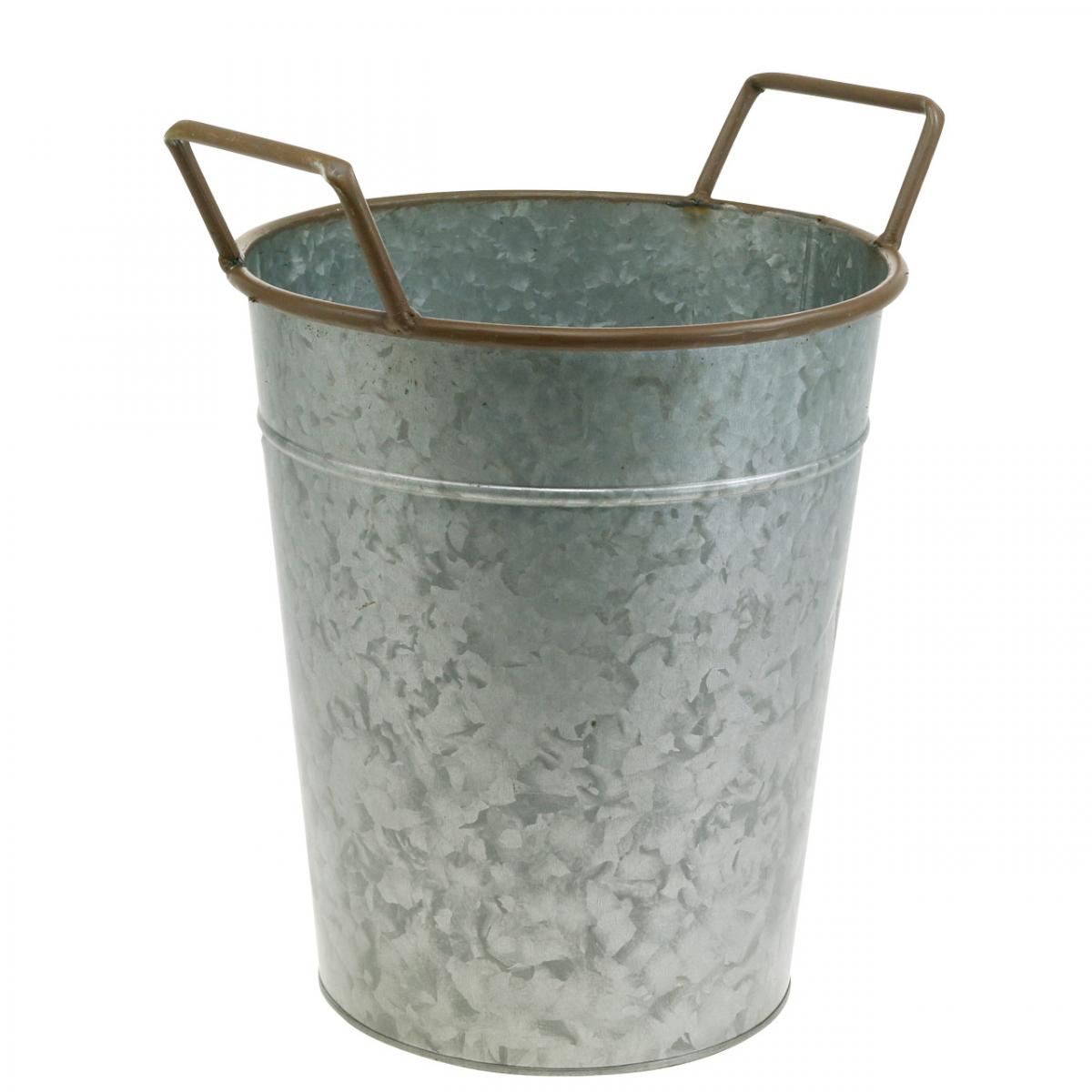 Planter with handles, metal vessel for planting, plant pot silver, brown Ø24cm H32.5cm