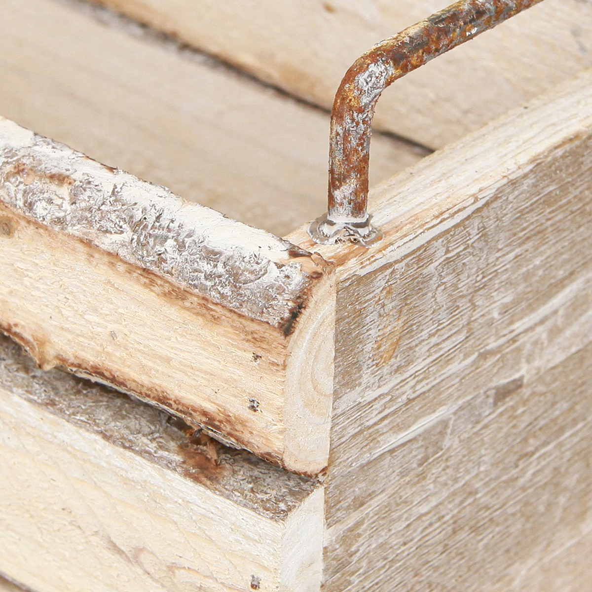 The two wooden plant boxes with bark embody the charm of nature and give your home a rustic touch. Made from high-quality wood with existing bark, each box is unique and impresses with individual grains and textures. The robust handles with rust patina give the design a vintage touch, while the clear plastic insert allows direct planting. Attractive in form and function, these wooden plant boxes are ideal for creative decoration concepts in the living room, kitchen or on the balcony. A drainage layer of gravel or expanded clay is recommended for optimal plant conditions. Perfect for use as a herb box or for storing garden tools, this versatile wooden decoration integrates wonderfully into any environment, both in spring, summer and autumn. Combine it with other natural decorative elements from Floristik24 for a harmonious overall picture.