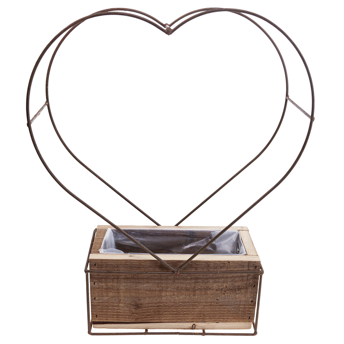 The mini wooden planter goes beyond the function of a classic flower box. The embedded metal decoration in the shape of a heart gives every room a special touch. The elegant rust patina of the heart decoration underlines the vintage ambience and makes each specimen unique.