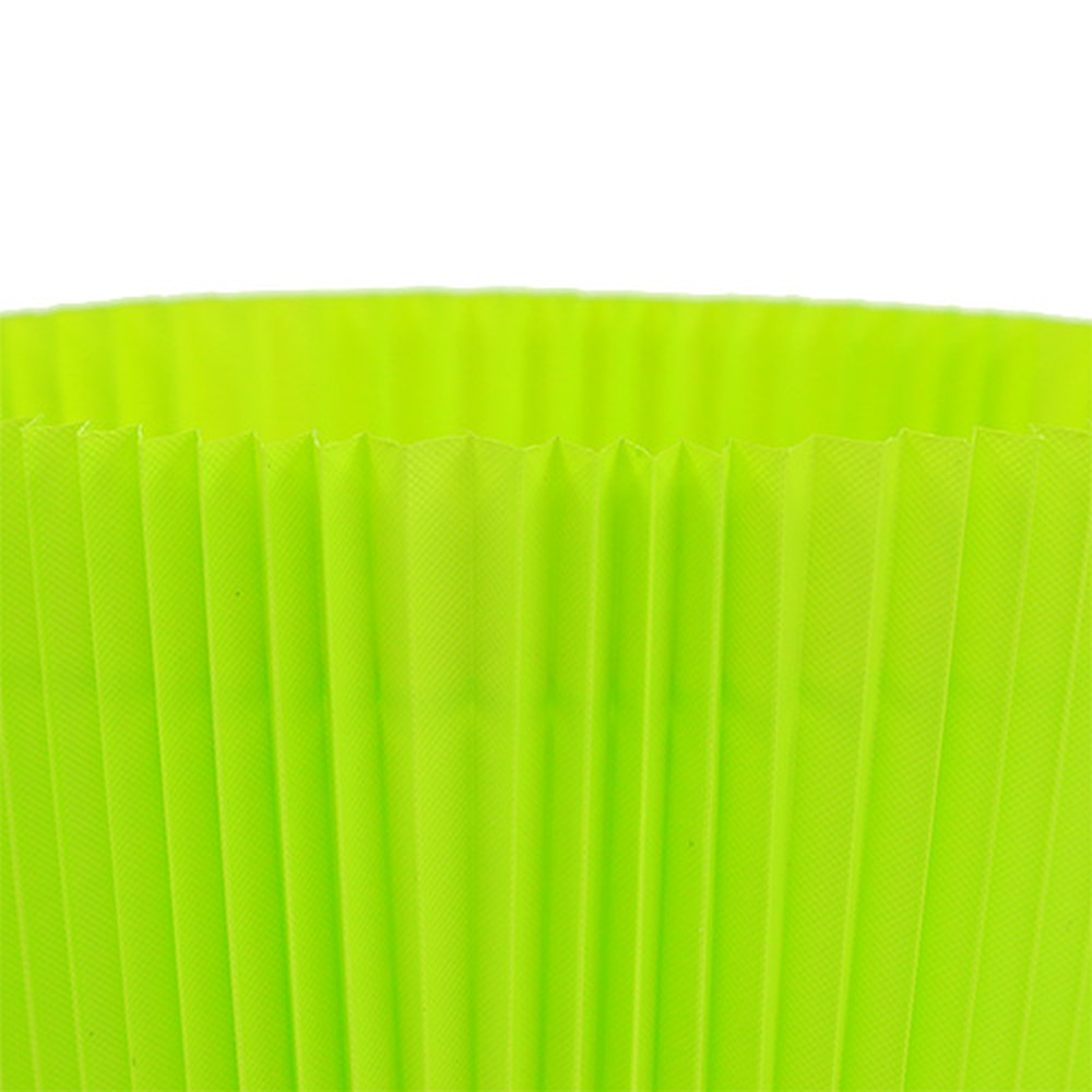 The pleated cuffs made of light green plastic are offered in a practical value pack with a total of 100 pieces and are each around 12.5 centimeters high. They are flexible and can of course be shortened and cut into shape.