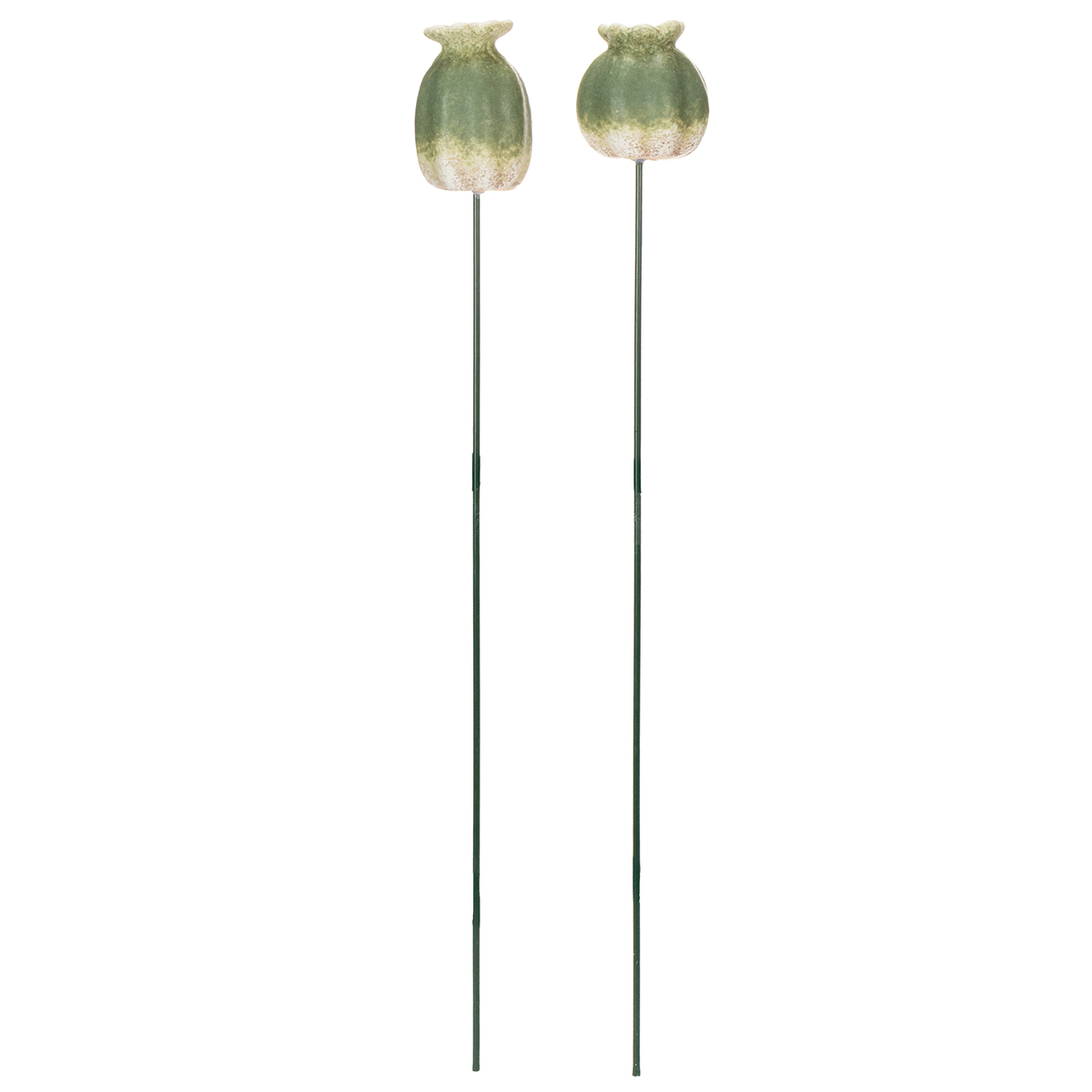 These poppy seed pods, mounted on a stake and measuring 41 centimeters in length, are an ideal addition to outdoor decorations. Made of high-quality ceramic, their classic green color gives them a remarkably natural look, while their robust feel adds a touch of elegance. The poppy seed pods are assorted in two varieties, ensuring each one has a slight visual variation, adding visual interest and a natural feel. Perfect for a country-style or botanical look – understated elegance at its finest.