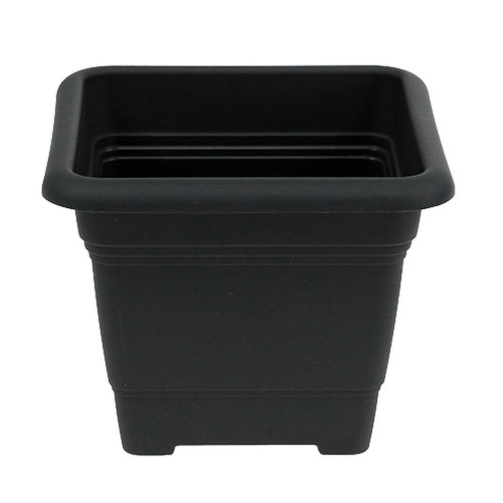 The angular shape and the dark gray color give the plant pot a trendy look, while the four feet on the sides guarantee that it stands securely on the base. If you want to place the planter on the balcony or terrace, then equip it, for example, with a small ornamental tree, a lush azalea or a small rose bush. A boxwood cut into shape or a colorful hydrangea is also an excellent choice for the plastic pot.