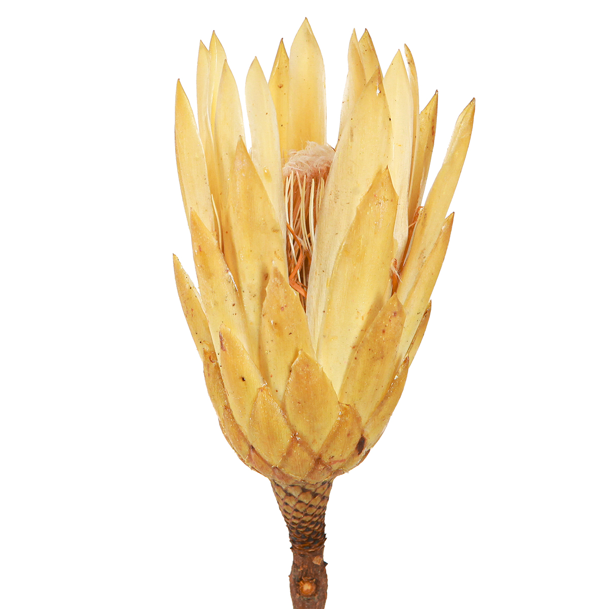 The woody, robust flowers are on sturdy stems in a darker brown and can therefore be easily fixed in potting compound, straw or potting soil. With a sharp pair of secateurs, you can of course also shorten the stems and thus adapt the dried flower individually to your creations. The Protea Repens is not only used in memorial floristry in a wide variety of ways, but is also ideal for completing atmospheric autumn arrangements and impressive decorations for shop window displays.