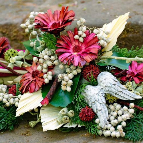 Proteas are widely used in memorial floristry as dried flowers for flower arrangements, funeral wreaths, coffin or grave décor. The Protea is a majestic plant with exceptionally beautiful flower heads and a versatile appearance. It comes from South Africa and belongs to the genus of the silver tree family.