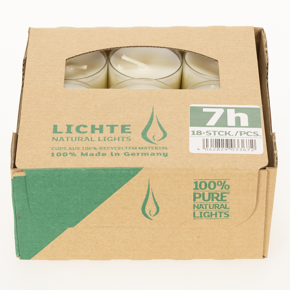 Product name: PURE Nature Lights Tealights Rapeseed Wax Natural Burning time 7 hours 18 pieces