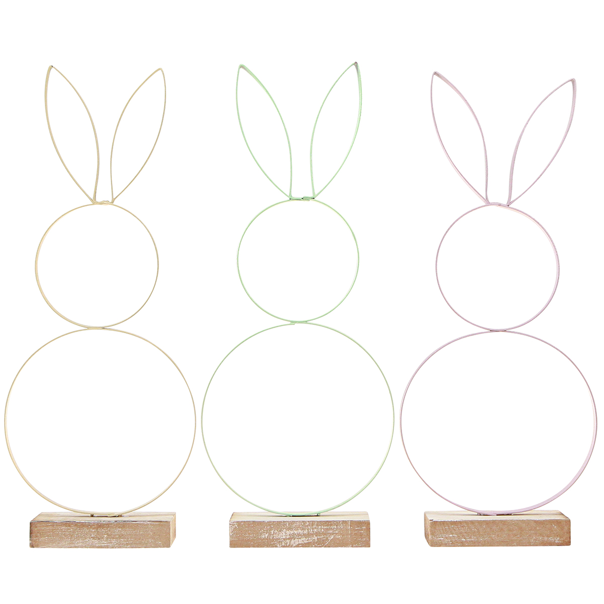 Rabbit Decoration Metal Wood Natural Yellow Mint Pink H28cm 3 Pcs