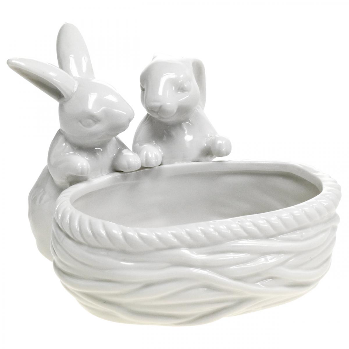 Rabbits with nest, table decoration, Easter nest, porcelain decoration, decorative bowl white L15cm H11cm