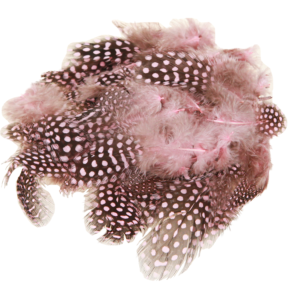 Real Guinea Fowl Feathers Pink with Dots 4-12cm 100 Pcs