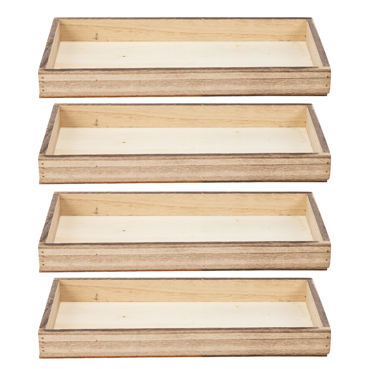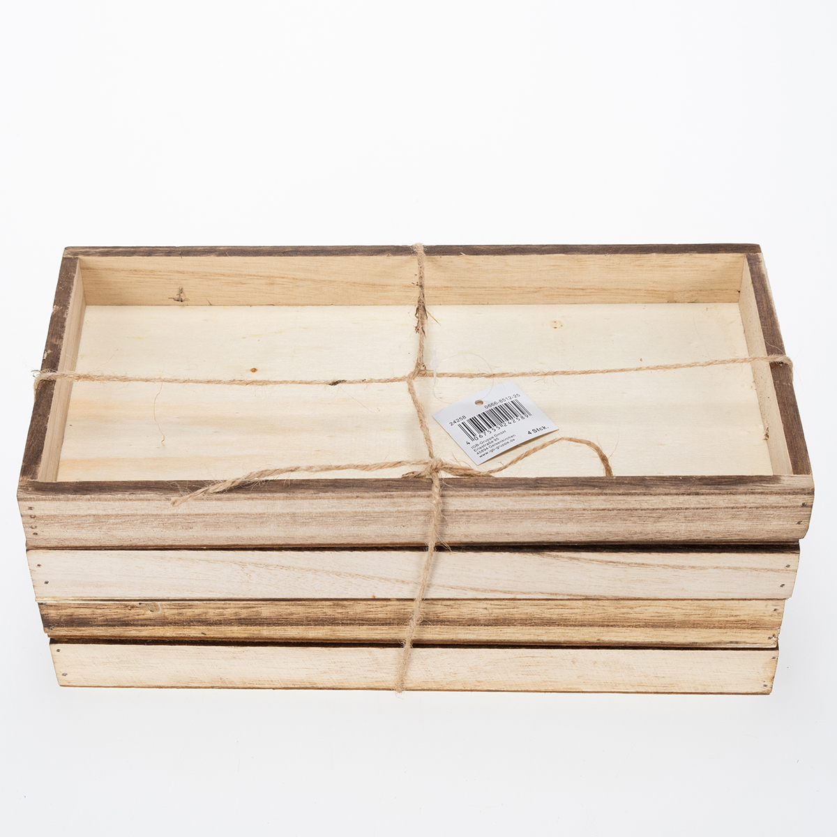 Rectangular wooden tray, practical organizer, versatile, robust design, 30cm, 4 pieces