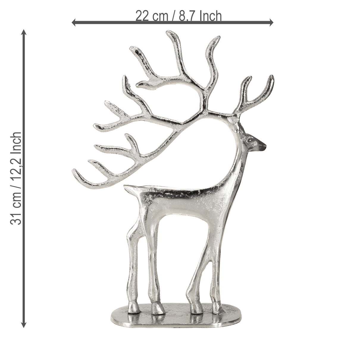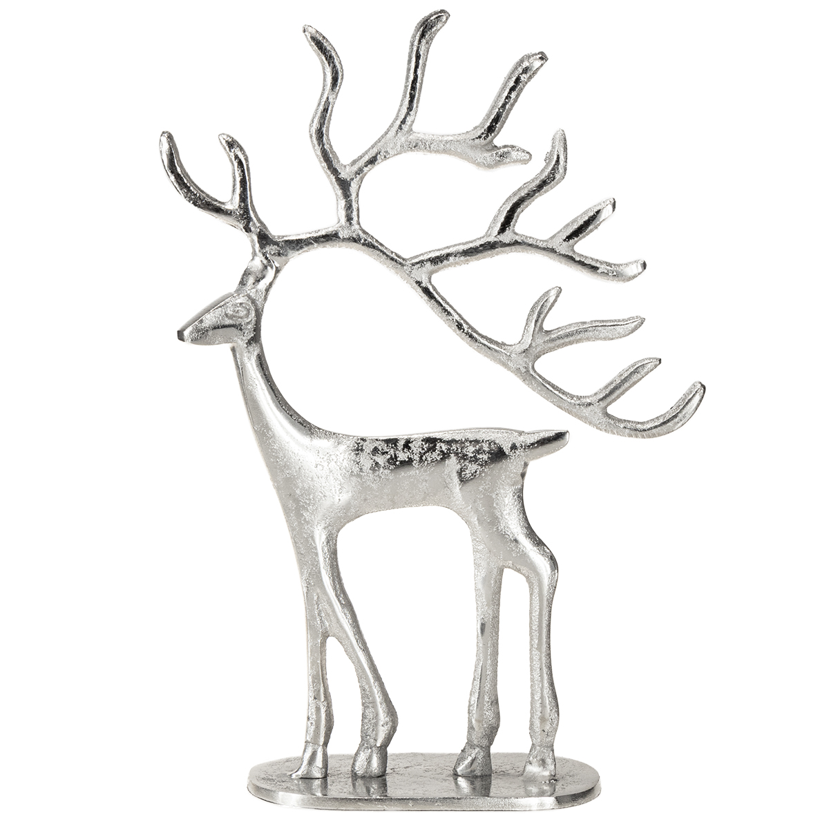 The days are getting shorter, winter is approaching, and anticipation of the Christmas season is growing. What could be more beautiful than transforming your home into a cozy, warm winter wonderland? Our tip: the silver metal reindeer decorative stag figurine. This enchanting figurine, with an impressive height of approximately 31 cm, not only brings a festive atmosphere into your home, it's guaranteed to attract attention! Its stylish appearance and elegant silver finish make this stag a perfect all-rounder for any decorating idea—whether on the mantel, in the hallway, or as the elegant centerpiece of your festive table setting.