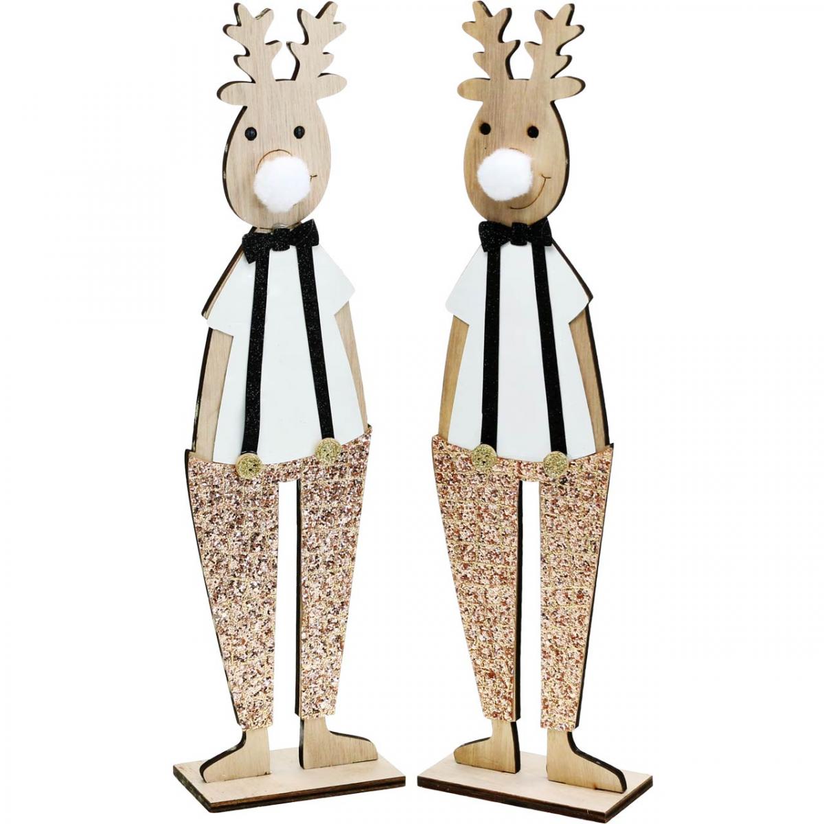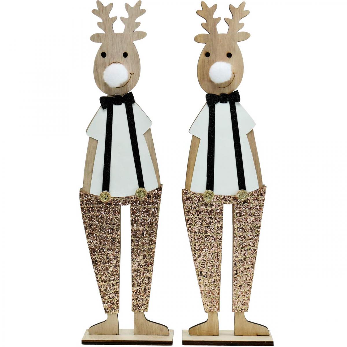 Reindeer wooden decoration figure Christmas to put 12×6.5cm H45cm 2pcs