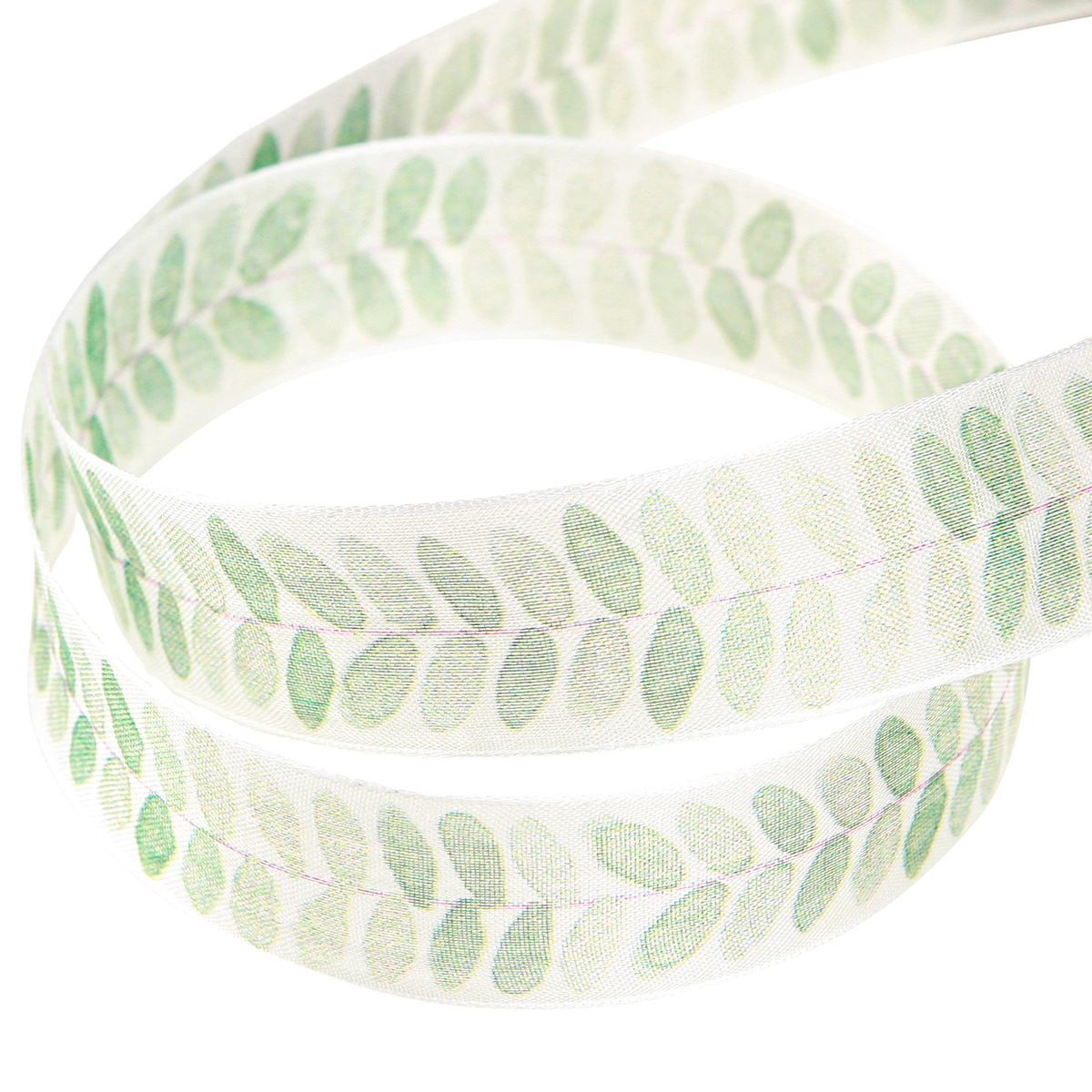 Ribbon Green Leaves Organza Ribbon Decorative Ribbon 25mm 18m