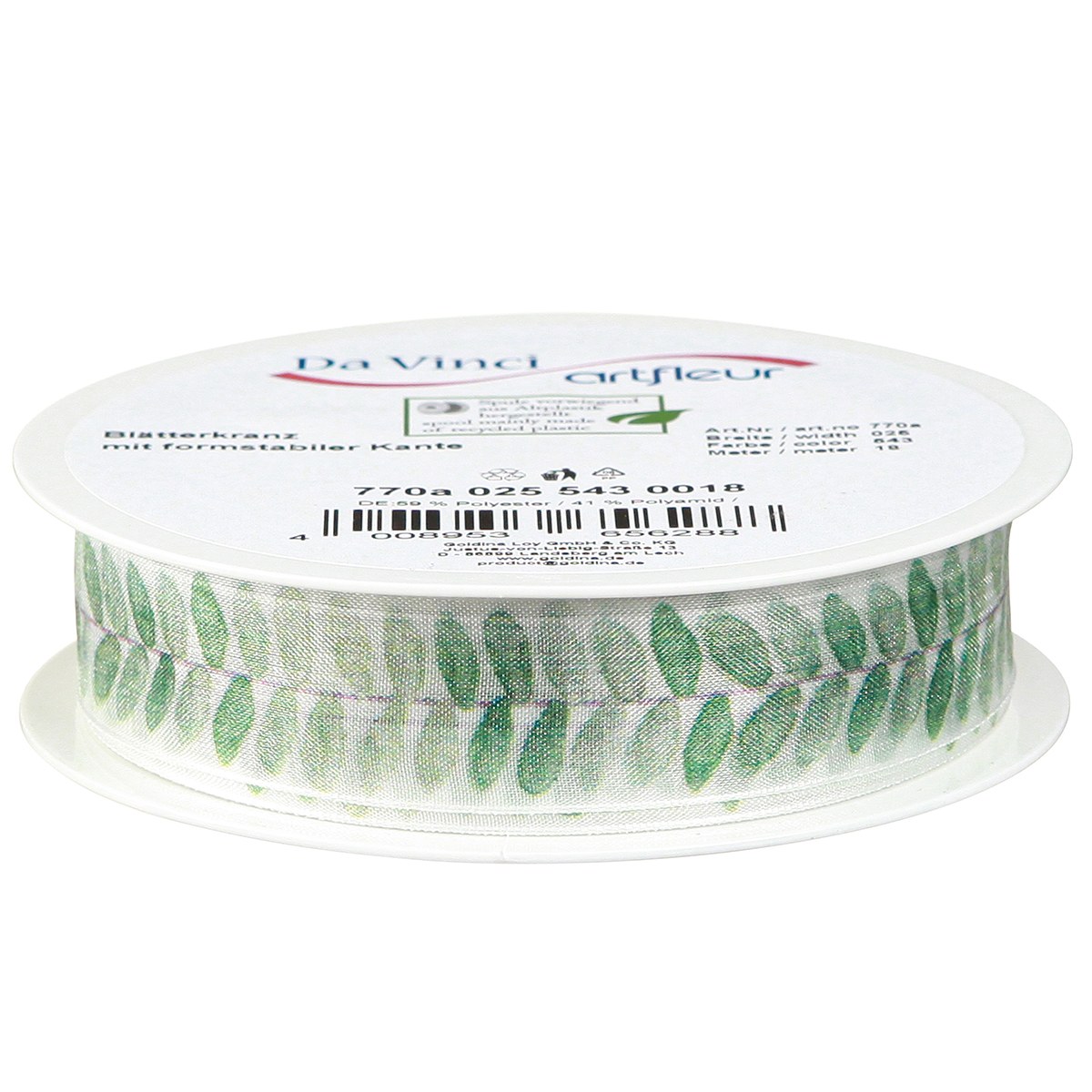 The ribbon is also ideal for a sustainable and environmentally friendly decoration concept. While synthetic materials are often viewed with skepticism, this high-quality polyester fabric scores points for its long durability and versatile uses. Experience the inspiration that the organza ribbon with the green leaf motif brings to your projects and discover new creative heights.