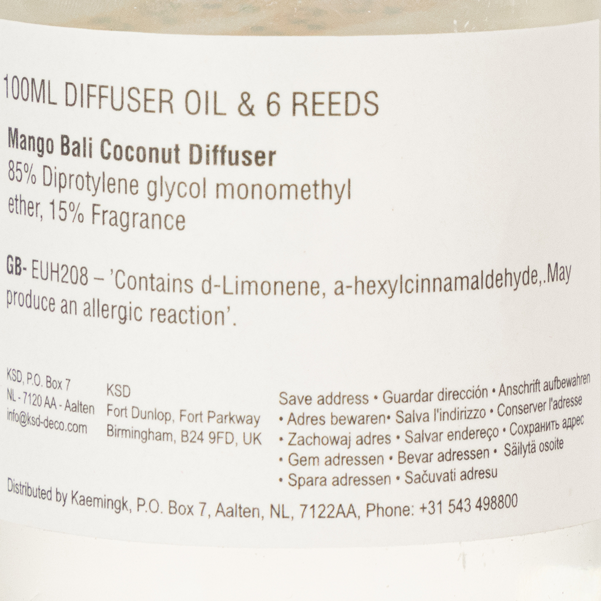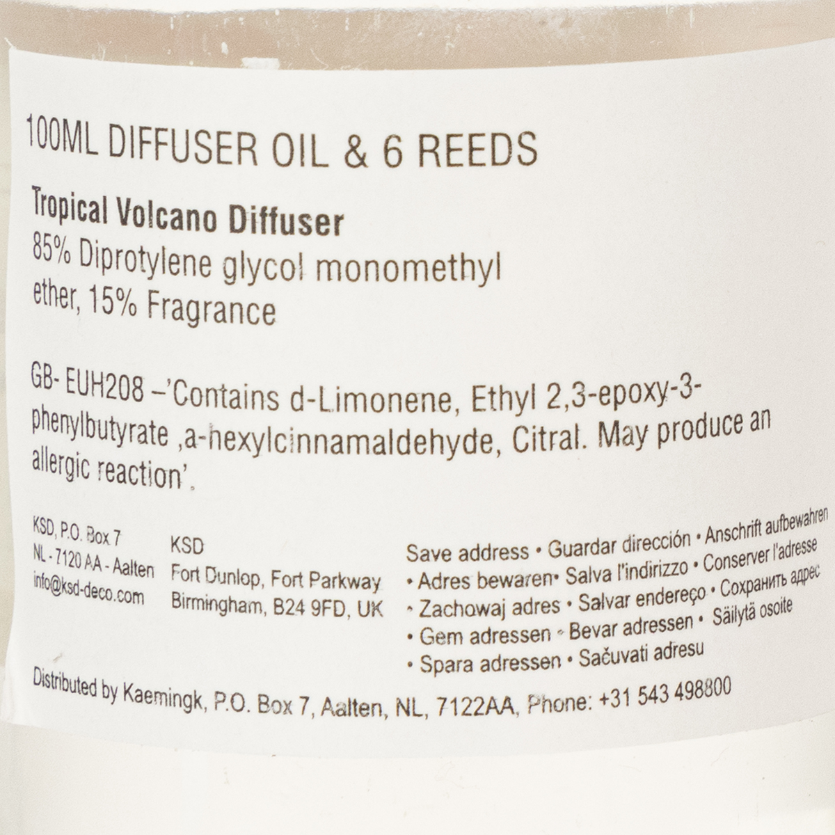 Hazard statements: Contains d-limonene, α-hexyl cinnamaldehyde. May cause allergic reactions.