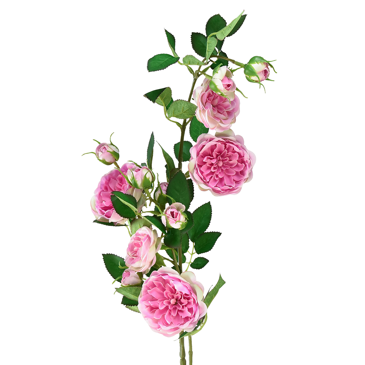 The total length of the pink rose branch is approximately 79 centimeters. The artificial rose blossoms have a diameter of approximately 2.5 and 6.5 centimeters.