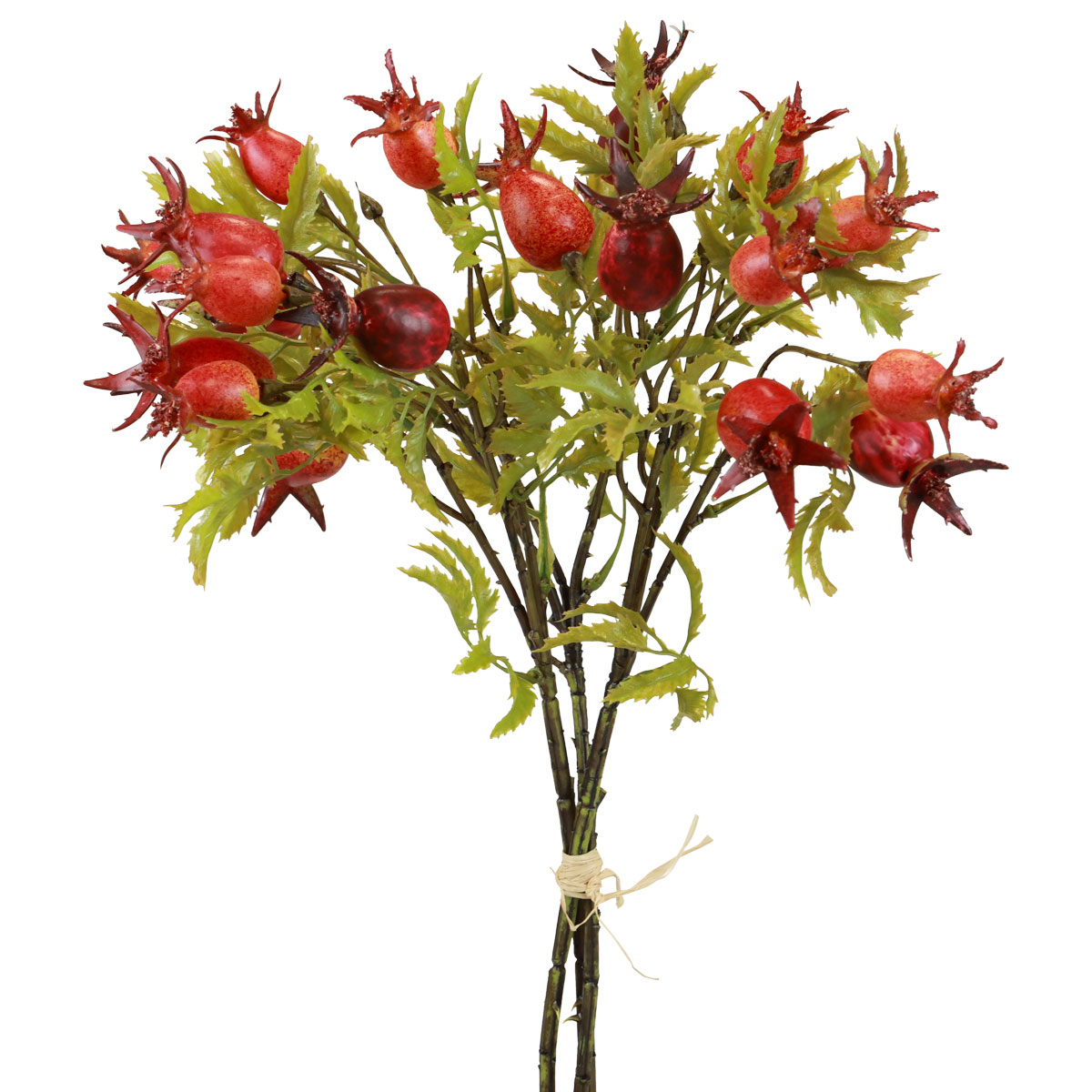 Just as the wild roses with their rose hips decorate the garden in autumn and into winter, these artificial rose hip branches can make your home or shop more colorful and autumnal.