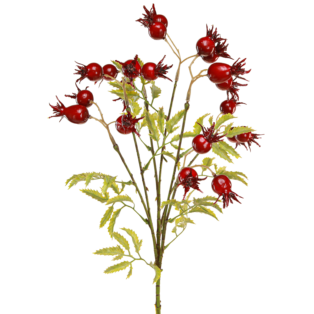 Rosehips artificial decorative branches with 7 fruits dark red 48cm