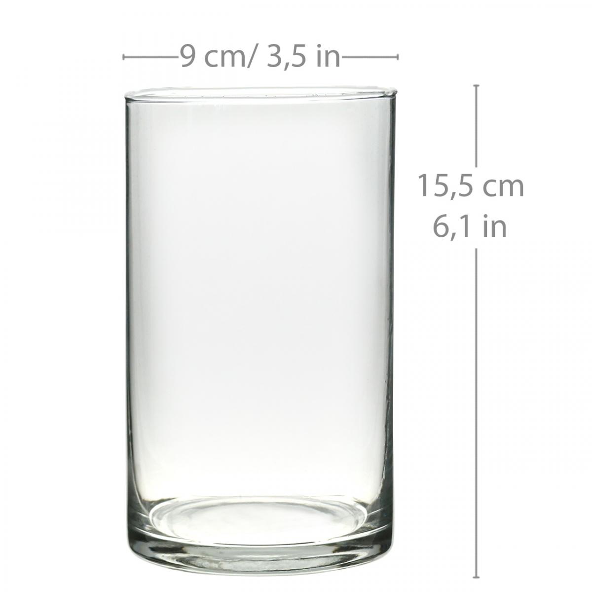 Round glass vase, clear glass cylinder Ø9cm H15.5cm