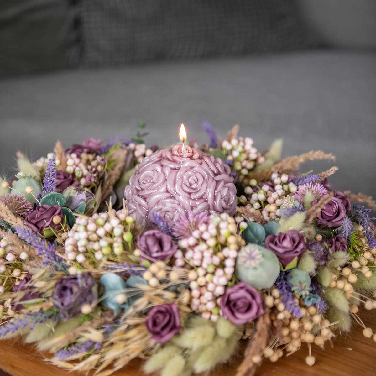 Or how about the original candles for the wedding decoration? As an original candle decoration for a bathroom or in the living room, the pink candle can also stand alone. For even more decoration with roses, combine the ball candle with the smaller version, which you can also find in our shop.