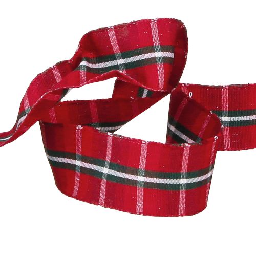 Product name: Rustic check ribbon in red for festive decorations Width 25mm Long 15m