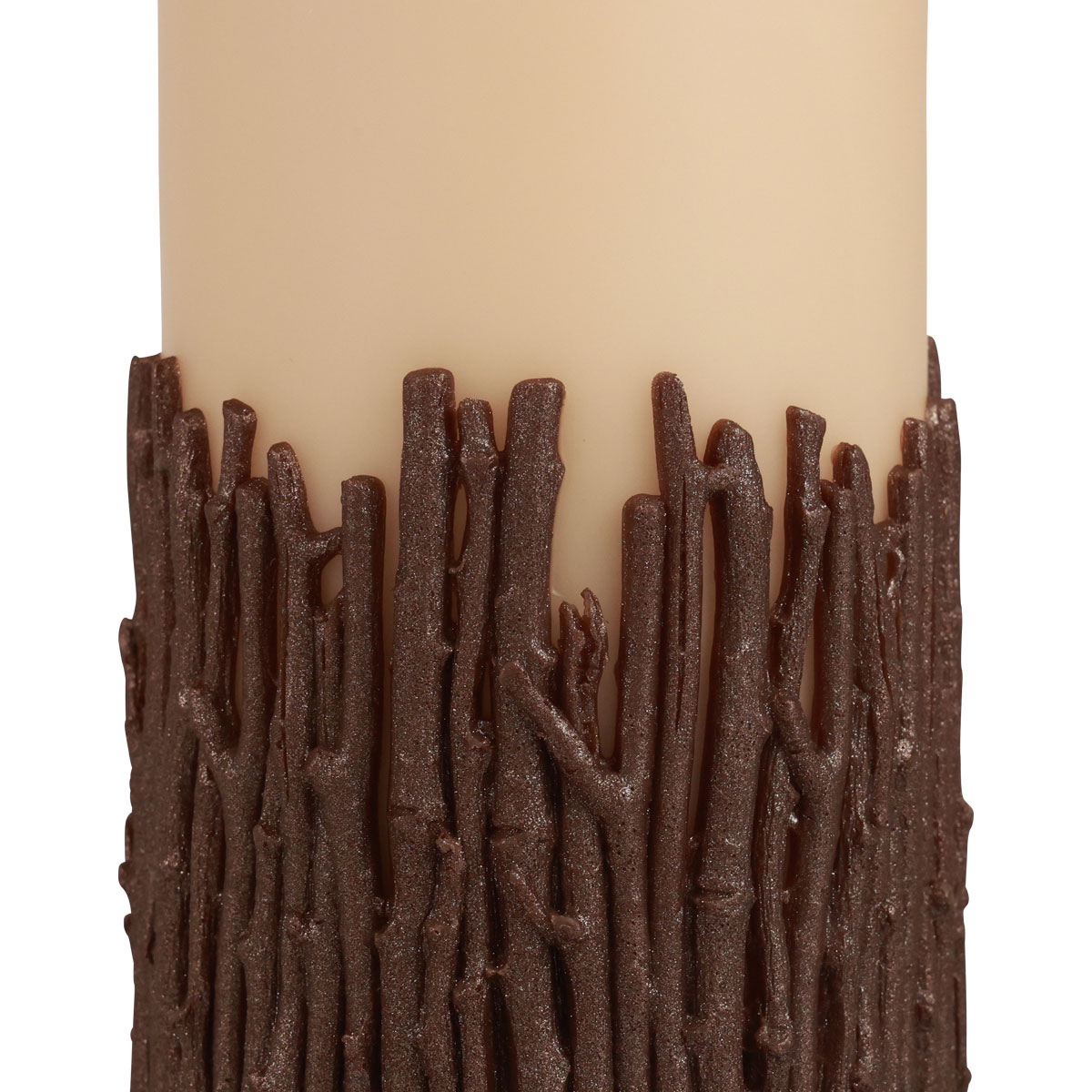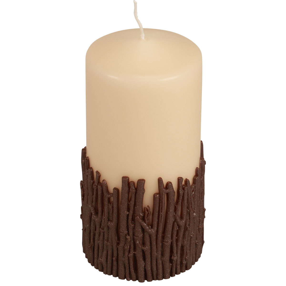 Rustic pillar candle with branches, beige, 150x70mm, decorative candle