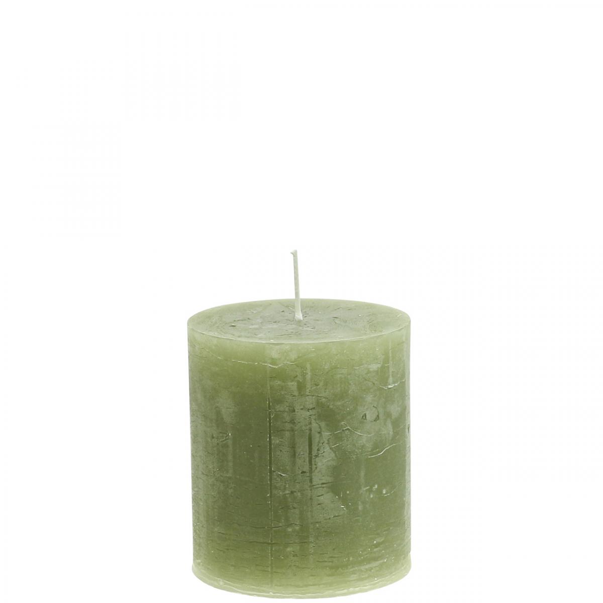 Product name: Rustic, solid-colored olive green pillar candles, 70x80mm, set of 4, decorative candles, wax candles