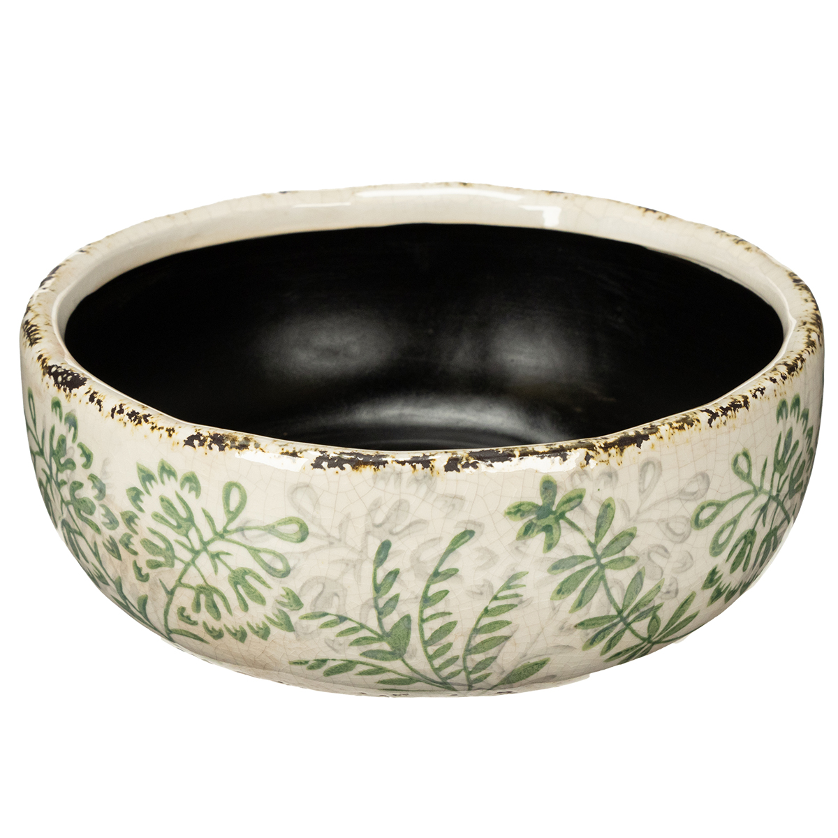 Do you love the rustic country style and want to add a touch of nature to your home? Then this rustic ceramic bowl with its unique plant pattern is just what you're looking for. Whether as a decorative highlight on your dining table, a stylish way to store jewelry, or an original candle holder – this handcrafted bowl impresses with its versatility and timeless elegance. Yellowish white and a hint of green add natural accents, while the intricately detailed plant pattern radiates warmth and coziness. Be inspired and bring a truly unique piece into your home with this decorative bowl!