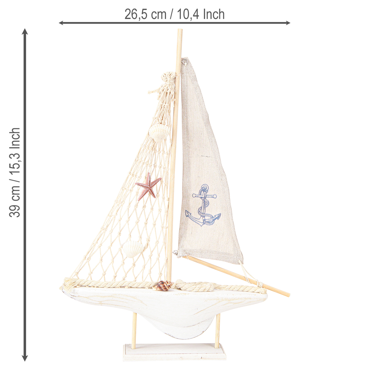 Product name: Sailboat decoration wood pine on base natural white H39cm