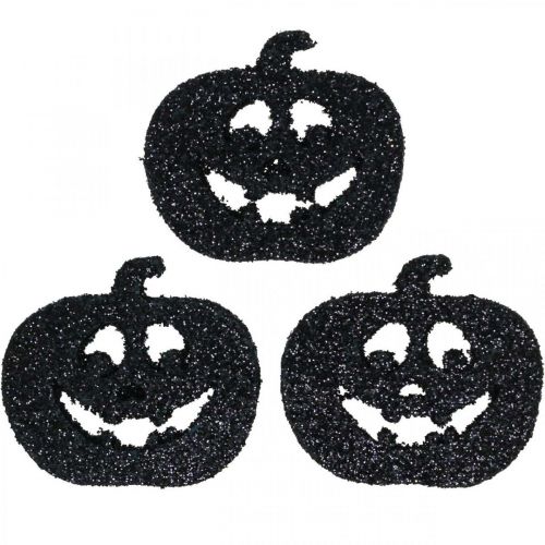 Scatter decoration Halloween pumpkin decoration 4 cm black, glitter 72 pcs
