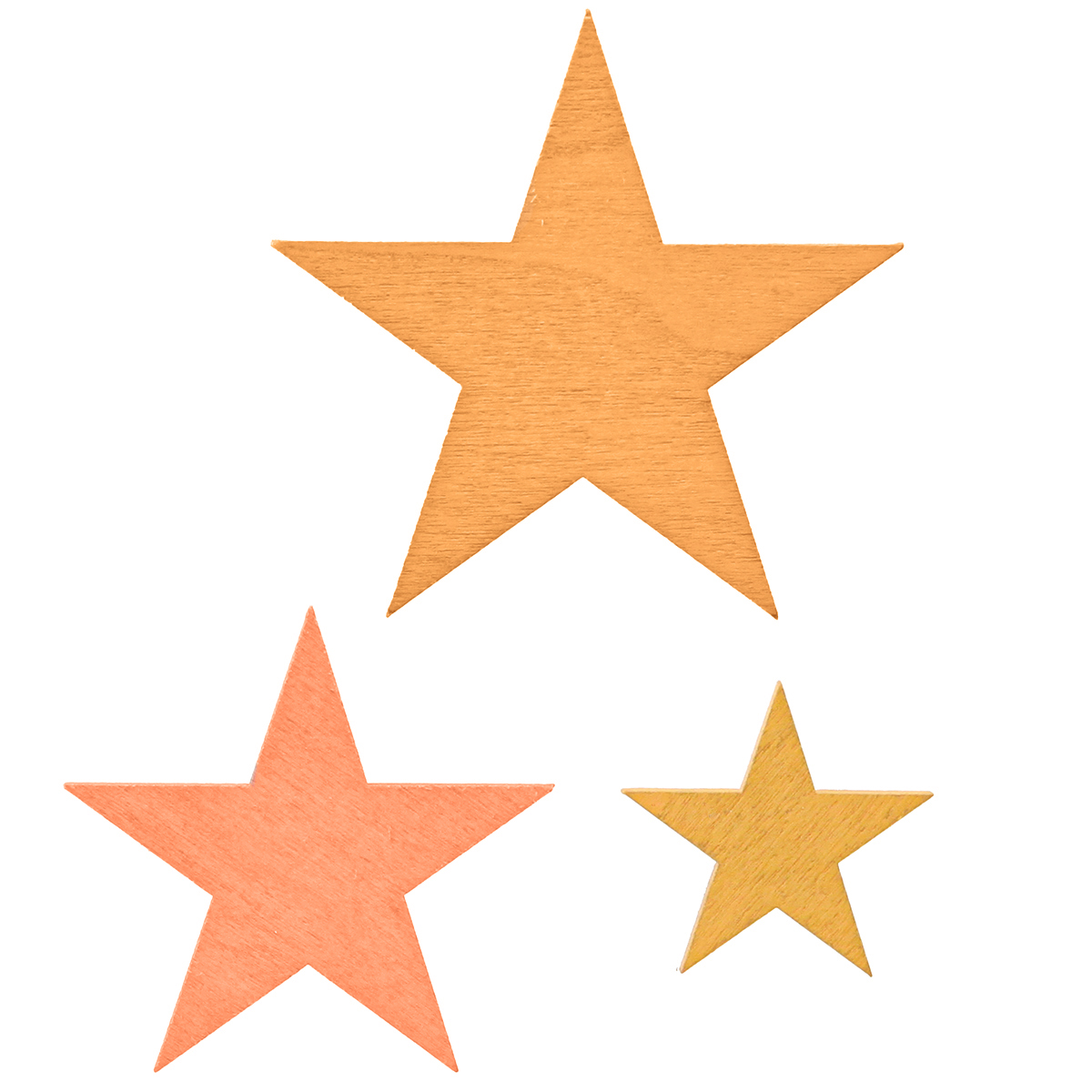 Scatter decoration stars wood orange 3 colors Ø3.5/5.5/7cm 48 pcs