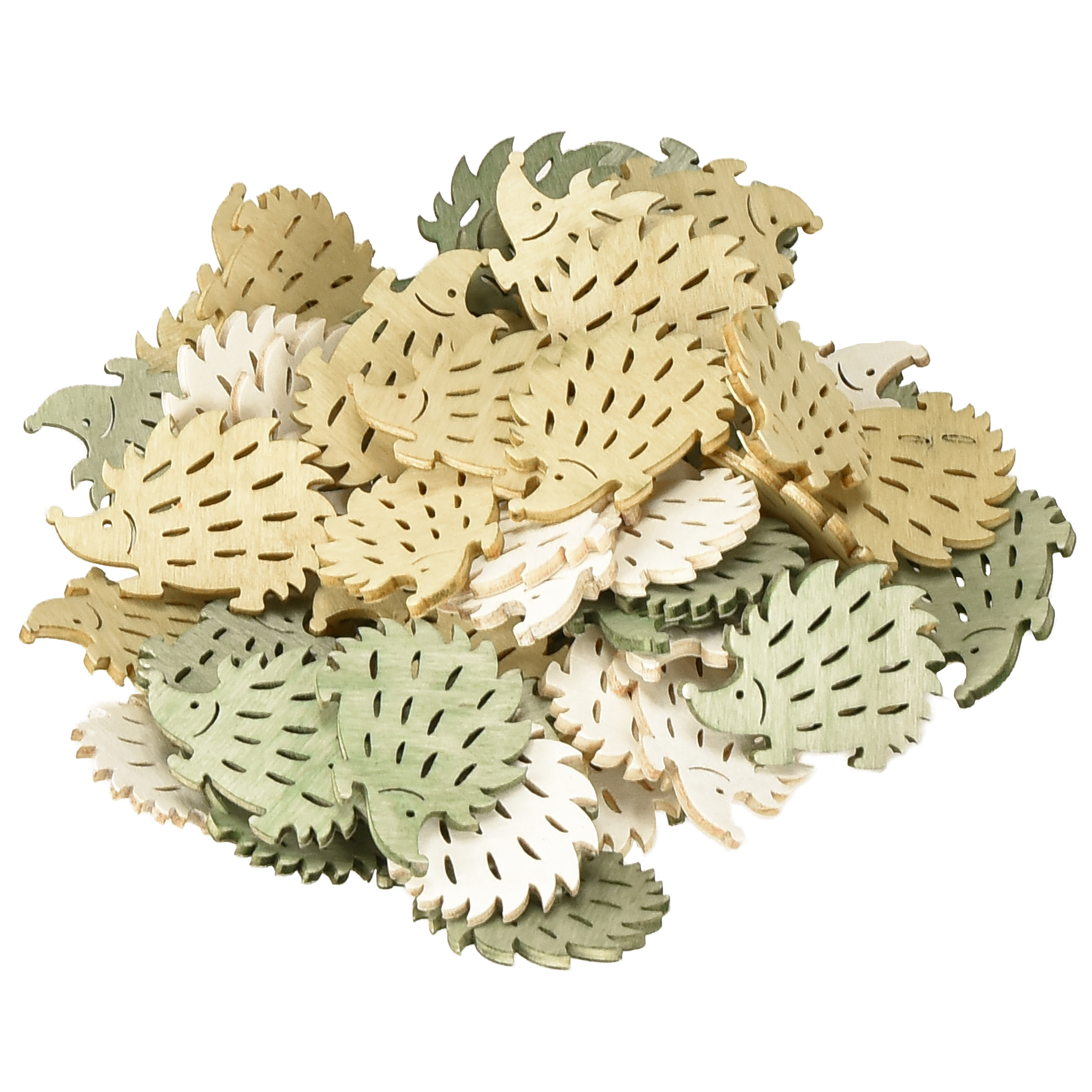 Scatter decoration wooden hedgehog decoration green brown white 4x3cm 72 pcs