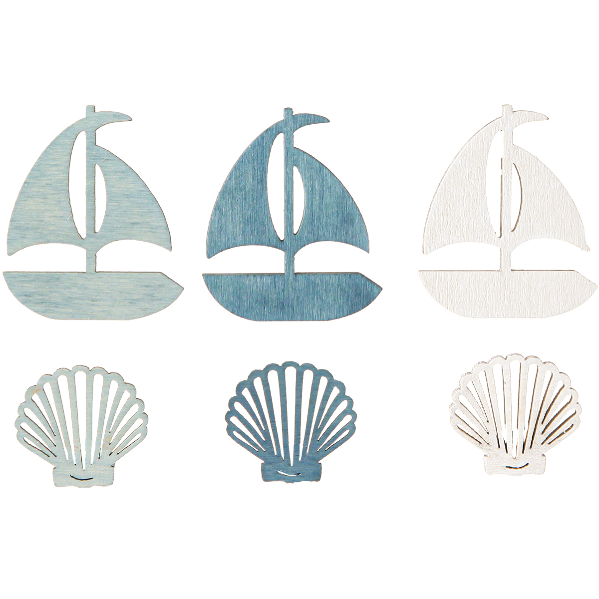 Scatter Pieces Wooden Decoration Shell Boat Blue White 2.5/4cm 72 Pcs