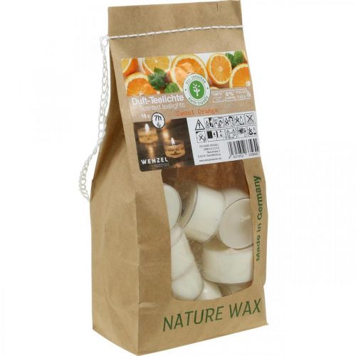 Scented candles orange, tealights fragrance, room fragrance candle Ø3.8cm H2.3cm white 18 pcs