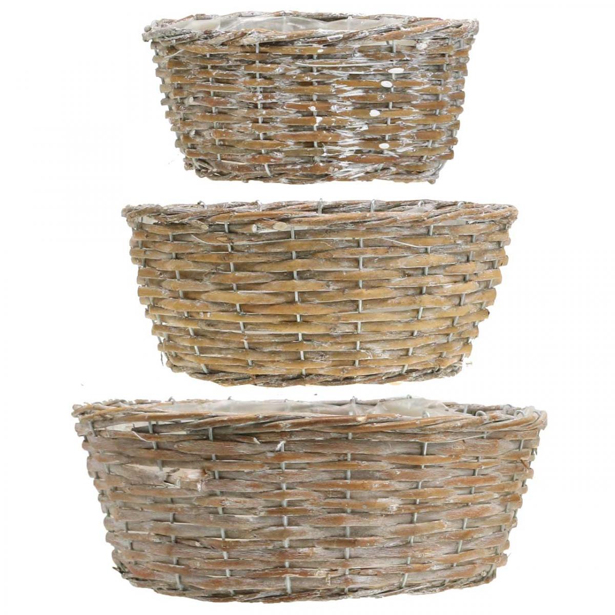 Product name: Set of 3 wicker baskets, planters, decorative baskets, white washed vintage style, Ø21.5/26/31cm for home and garden