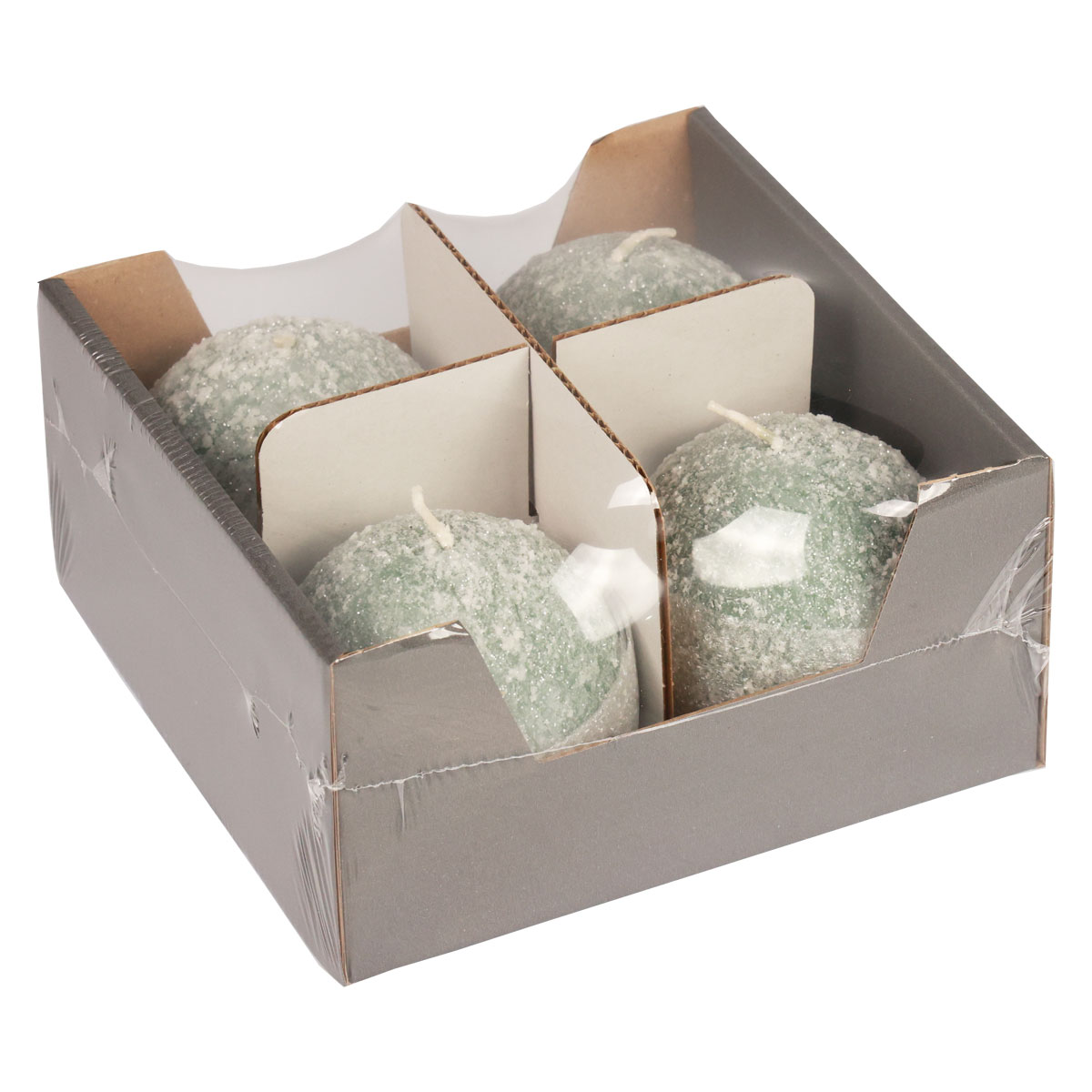 Product name: Set of 4 Green Ball Candles 8cm Glitter Snowball Christmas Decoration Advent Candles