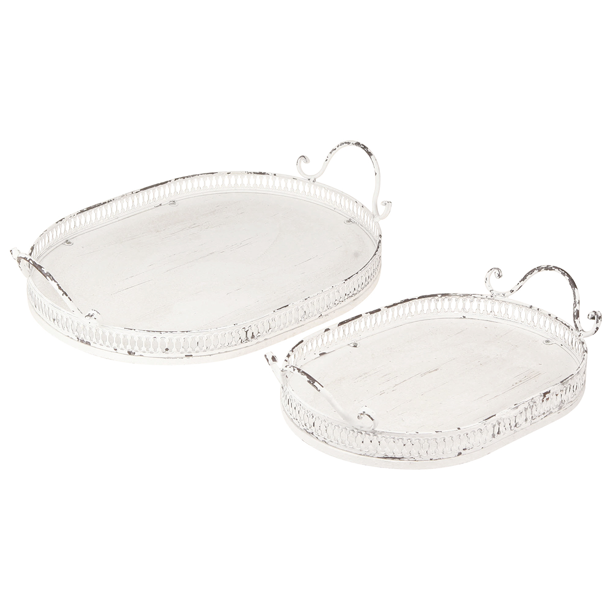 Shabby Chic tray oval with handles white 36/45cm set of 2